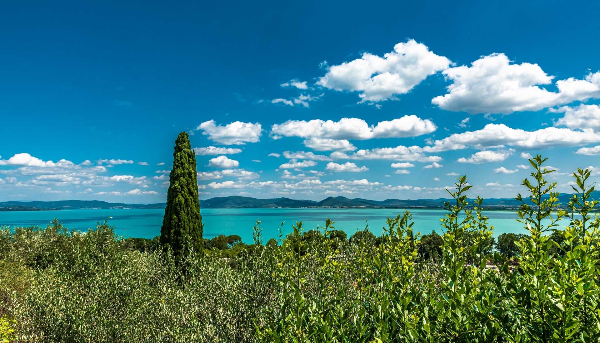 Nel cuore verde dell’Umbria, tra vitigni e ulivi si stende il lago Trasimeno, un vero e proprio paradiso naturale, il clima mite del Lago Trasimeno e i pendii delle colline che lo circondano favoriscono la produzione di Vino e Olio di alta qualità.